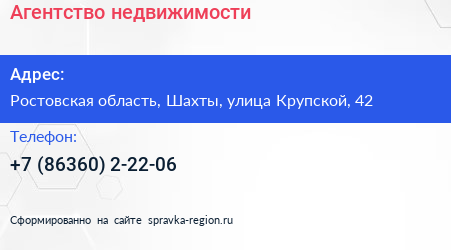 Агентство недвижимости по адресу Ростовская область, Шахты, улица Крупской, 42 в дальнейшем Организация, размещена в следующих категориях: