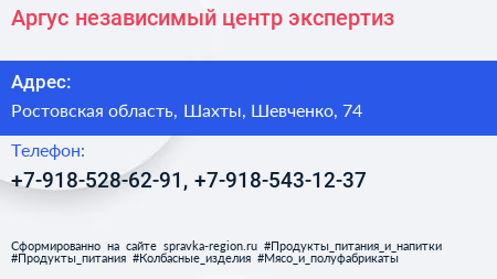 Аргус, независимый центр экспертиз по адресу Ростовская область, Шахты, Шевченко, 74 в дальнейшем Организация, размещена в следующих категориях:
