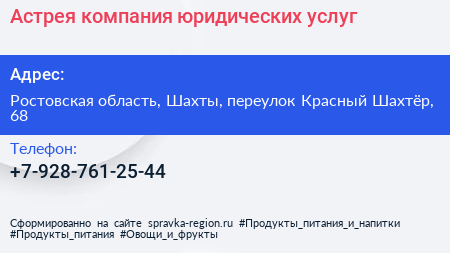 Астрея, компания юридических услуг по адресу Ростовская область, Шахты, переулок Красный Шахтёр, 68 в дальнейшем Организация, размещена в следующих категориях: