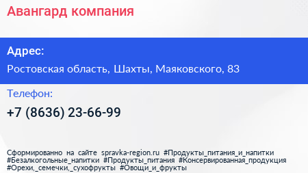 Авангард, компания по адресу Ростовская область, Шахты, Маяковского, 83 в дальнейшем Организация, размещена в следующих категориях: