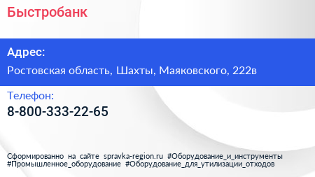 Быстробанк по адресу Ростовская область, Шахты, Маяковского, 222в в дальнейшем Организация, размещена в следующих категориях: