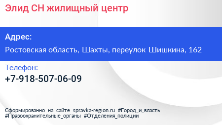 Элид-СН, жилищный центр по адресу Ростовская область, Шахты, переулок Шишкина, 162 в дальнейшем Организация, размещена в следующих категориях: