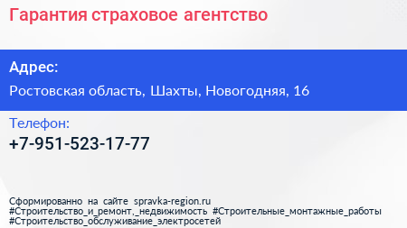 Гарантия, страховое агентство по адресу Ростовская область, Шахты, Новогодняя, 16 в дальнейшем Организация, размещена в следующих категориях: