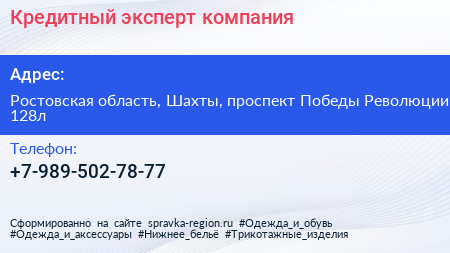 Кредитный эксперт, компания по адресу Ростовская область, Шахты, проспект Победы Революции, 128л в дальнейшем Организация, размещена в следующих категориях: