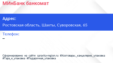 МИнБанк, банкомат по адресу Ростовская область, Шахты, Суворовская, 65 в дальнейшем Организация, размещена в следующих категориях: