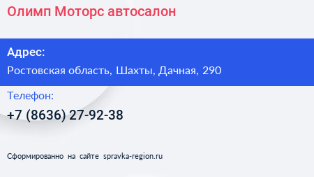 Олимп Моторс, автосалон по адресу Ростовская область, Шахты, Дачная, 290 в дальнейшем Организация, размещена в следующих категориях: