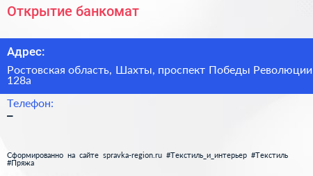 Открытие, банкомат по адресу Ростовская область, Шахты, проспект Победы Революции, 128а в дальнейшем Организация, размещена в следующих категориях:
