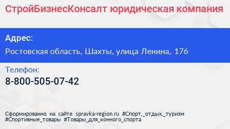 СтройБизнесКонсалт, юридическая компания по адресу Ростовская область, Шахты, улица Ленина, 176 в дальнейшем Организация, размещена в следующих категориях: