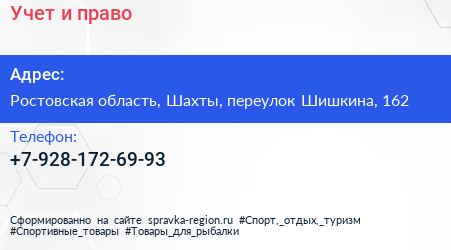 Учет и право по адресу Ростовская область, Шахты, переулок Шишкина, 162 в дальнейшем Организация, размещена в следующих категориях:
