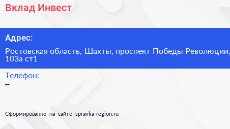 Вклад Инвест по адресу Ростовская область, Шахты, проспект Победы Революции, 103а ст1 в дальнейшем Организация, размещена в следующих категориях: