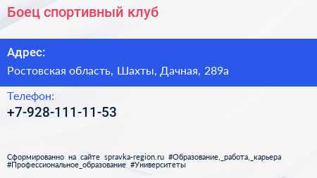 Боец, спортивный клуб по адресу Ростовская область, Шахты, Дачная, 289а в дальнейшем Организация, размещена в следующих категориях: