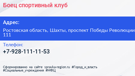 Боец, спортивный клуб по адресу Ростовская область, Шахты, проспект Победы Революции, 111 в дальнейшем Организация, размещена в следующих категориях: