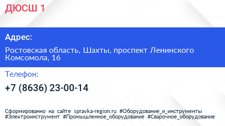 ДЮСШ №1 по адресу Ростовская область, Шахты, проспект Ленинского Комсомола, 16 в дальнейшем Организация, размещена в следующих категориях: