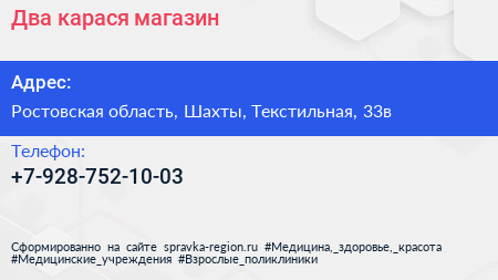 Два карася, магазин по адресу Ростовская область, Шахты, Текстильная, 33в в дальнейшем Организация, размещена в следующих категориях: