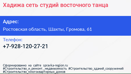 Хадижа, сеть студий восточного танца по адресу Ростовская область, Шахты, Громова, 61 в дальнейшем Организация, размещена в следующих категориях: