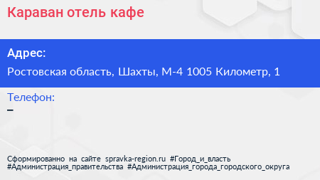 Караван, отель-кафе по адресу Ростовская область, Шахты, М-4 1005 Километр, 1 в дальнейшем Организация, размещена в следующих категориях: