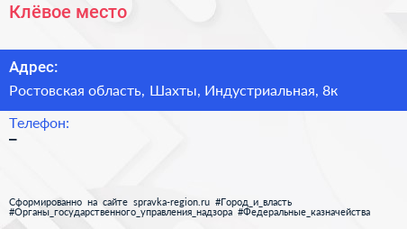 Клёвое место по адресу Ростовская область, Шахты, Индустриальная, 8к в дальнейшем Организация, размещена в следующих категориях: