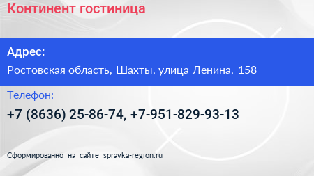 Континент, гостиница по адресу Ростовская область, Шахты, улица Ленина, 158 в дальнейшем Организация, размещена в следующих категориях: