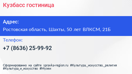 Кузбасс, гостиница по адресу Ростовская область, Шахты, 50 лет ВЛКСМ, 21Б в дальнейшем Организация, размещена в следующих категориях: