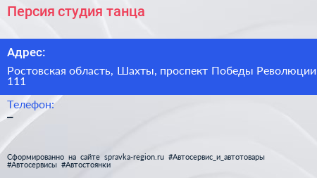 Персия, студия танца по адресу Ростовская область, Шахты, проспект Победы Революции, 111 в дальнейшем Организация, размещена в следующих категориях:
