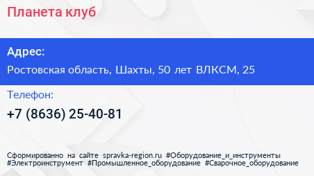 Планета, клуб по адресу Ростовская область, Шахты, 50 лет ВЛКСМ, 25 в дальнейшем Организация, размещена в следующих категориях:
