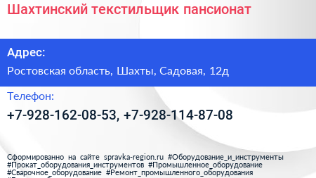 Шахтинский текстильщик, пансионат по адресу Ростовская область, Шахты, Садовая, 12д в дальнейшем Организация, размещена в следующих категориях: