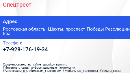Спецтрест по адресу Ростовская область, Шахты, проспект Победы Революции, 85а в дальнейшем Организация, размещена в следующих категориях: