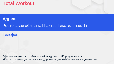 Total Workout по адресу Ростовская область, Шахты, Текстильная, 19а в дальнейшем Организация, размещена в следующих категориях: