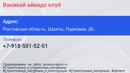 Вакикай, айкидо-клуб по адресу Ростовская область, Шахты, Парковая, 2Б в дальнейшем Организация, размещена в следующих категориях:
