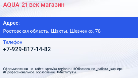 AQUA-21 век, магазин по адресу Ростовская область, Шахты, Шевченко, 78 в дальнейшем Организация, размещена в следующих категориях: