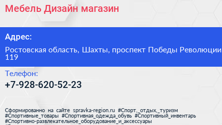 Мебель Дизайн, магазин по адресу Ростовская область, Шахты, проспект Победы Революции, 119 в дальнейшем Организация, размещена в следующих категориях: