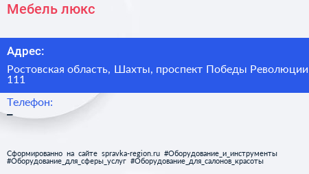 Мебель люкс по адресу Ростовская область, Шахты, проспект Победы Революции, 111 в дальнейшем Организация, размещена в следующих категориях: