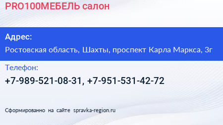 PRO100МЕБЕЛЬ, салон по адресу Ростовская область, Шахты, проспект Карла Маркса, 3г в дальнейшем Организация, размещена в следующих категориях: