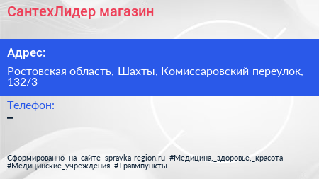 СантехЛидер, магазин по адресу Ростовская область, Шахты, Комиссаровский переулок, 132/3 в дальнейшем Организация, размещена в следующих категориях: