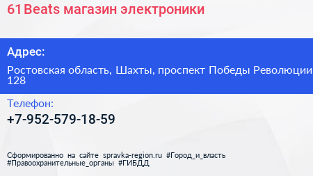 61 Beats, магазин электроники по адресу Ростовская область, Шахты, проспект Победы Революции, 128 в дальнейшем Организация, размещена в следующих категориях: