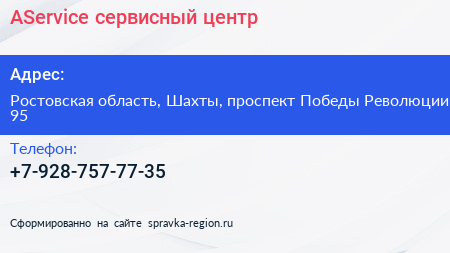 AService, сервисный центр по адресу Ростовская область, Шахты, проспект Победы Революции, 95 в дальнейшем Организация, размещена в следующих категориях: