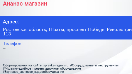 Ананас, магазин по адресу Ростовская область, Шахты, проспект Победы Революции, 113 в дальнейшем Организация, размещена в следующих категориях: