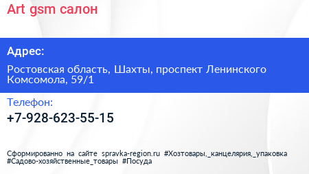 Art-gsm, салон по адресу Ростовская область, Шахты, проспект Ленинского Комсомола, 59/1 в дальнейшем Организация, размещена в следующих категориях: