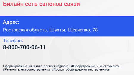 Билайн, сеть салонов связи по адресу Ростовская область, Шахты, Шевченко, 78 в дальнейшем Организация, размещена в следующих категориях: