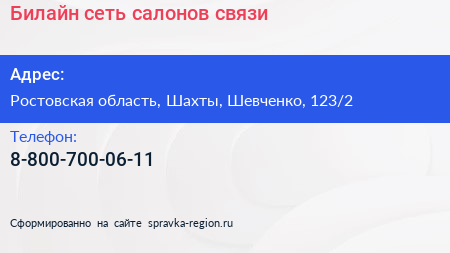 Билайн, сеть салонов связи по адресу Ростовская область, Шахты, Шевченко, 123/2 в дальнейшем Организация, размещена в следующих категориях: