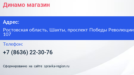 Динамо, магазин по адресу Ростовская область, Шахты, проспект Победы Революции, 107 в дальнейшем Организация, размещена в следующих категориях: