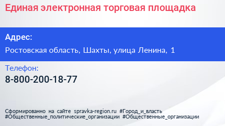 Единая электронная торговая площадка по адресу Ростовская область, Шахты, улица Ленина, 1 в дальнейшем Организация, размещена в следующих категориях:
