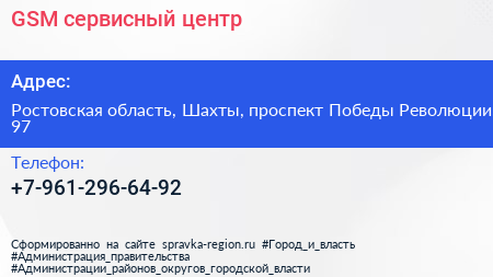 GSM, сервисный центр по адресу Ростовская область, Шахты, проспект Победы Революции, 97 в дальнейшем Организация, размещена в следующих категориях: