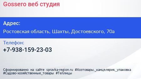 Gossero, веб-студия по адресу Ростовская область, Шахты, Достоевского, 70а в дальнейшем Организация, размещена в следующих категориях: