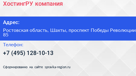 ХостингРУ, компания по адресу Ростовская область, Шахты, проспект Победы Революции, 85 в дальнейшем Организация, размещена в следующих категориях: