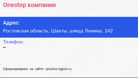 Onestep, компания по адресу Ростовская область, Шахты, улица Ленина, 142 в дальнейшем Организация, размещена в следующих категориях: