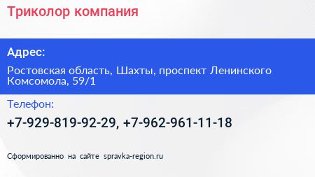 Триколор, компания по адресу Ростовская область, Шахты, проспект Ленинского Комсомола, 59/1 в дальнейшем Организация, размещена в следующих категориях: