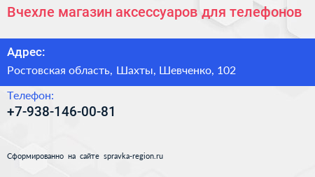 Вчехле, магазин аксессуаров для телефонов по адресу Ростовская область, Шахты, Шевченко, 102 в дальнейшем Организация, размещена в следующих категориях: