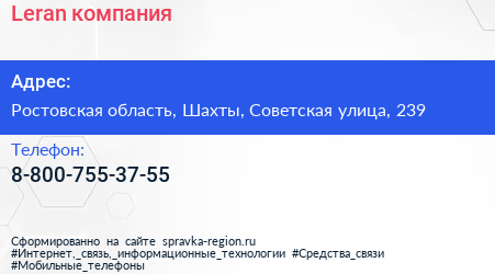 Leran, компания по адресу Ростовская область, Шахты, Советская улица, 239 в дальнейшем Организация, размещена в следующих категориях: