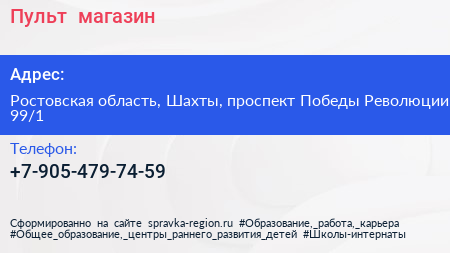 Пульт+, магазин по адресу Ростовская область, Шахты, проспект Победы Революции, 99/1 в дальнейшем Организация, размещена в следующих категориях: